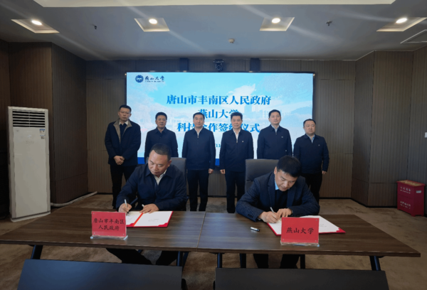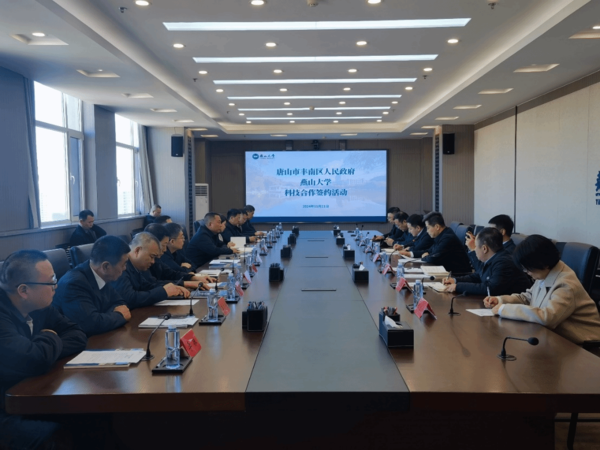燕山大学与丰南区人民政府、企业举行科技合作签约来源:燕山大学科技产业促进中心网址:https://www.ysu.edu.cn/news/info/5503/23864.htm 【新闻中心讯】11月21日上午,唐山市丰南区委副书记、区长霍强,区委常委、副区长兰绍光,又日新(唐山)新材料科技有限公司董事长李久俊等一行16人到访我校。政、校、企三方共同参与了“唐山市丰南区人民政府与燕山大学科技合作”及“共建燕山大学丰南区功能材料及装备技术转移分中心”两个科技合作协议的签约活动。 签约仪式前,学校党委书记赵险峰会见霍强一行,对霍强率队来访表示热烈欢迎。他表示,燕山大学与丰南区政府始终保持着密切的合作关系,此次科技合作和共建技术转移分中心协议的签署,开启了政、校、企深入合作的新篇章。燕山大学将发挥自身优势,不断深化校地合作内涵,拓展合作领域,提升合作层次,为地方经济社会发展贡献燕大智慧和力量。